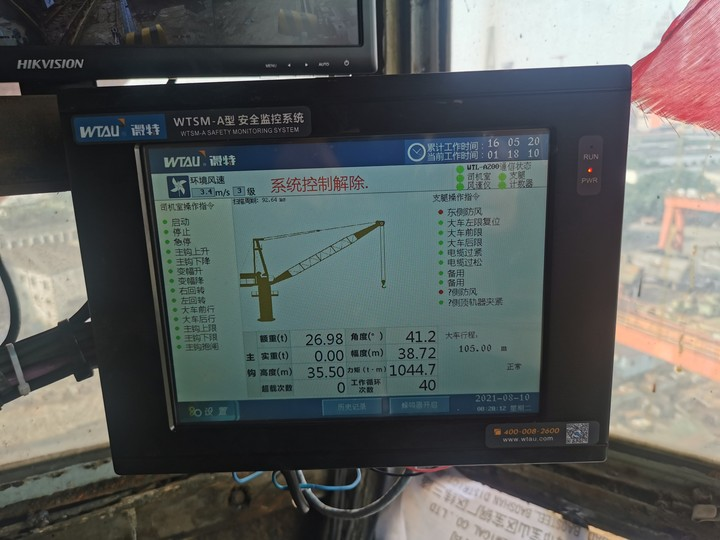 微特與東南造船廠此次合作加裝的WTSM-A型安全監控系統按照國標要求,對門座機機加裝了角度傳感器、風速儀、力矩限制器,監控系統主機與高度和行程測量傳感器,大臂頂端與四個支腿各加裝一個攝像頭。