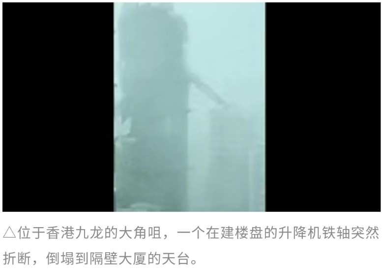 位于香港九龍的大角咀,一個在建樓盤的升降機鐵軸突然折斷,倒塌到隔壁大廈的天臺。警方接到報警后迅速到場,疏散了大廈內的40名居民,所幸暫時無人受傷。