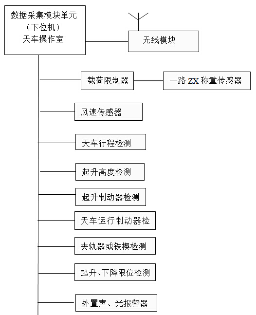 該裝置是綜合應(yīng)用信息傳感技術(shù)、嵌入式技術(shù)、遠(yuǎn)程通信技術(shù)的高科技智能產(chǎn)品,可廣泛應(yīng)用于各個(gè)領(lǐng)域的載重、起重機(jī)械,實(shí)現(xiàn)對(duì)設(shè)備工作狀況的安全保護(hù)監(jiān)測(cè)。該裝置由傳感器檢測(cè)系統(tǒng)、圖像終端、視頻監(jiān)控系統(tǒng)和遠(yuǎn)程監(jiān)控系統(tǒng)(選配)構(gòu)成。