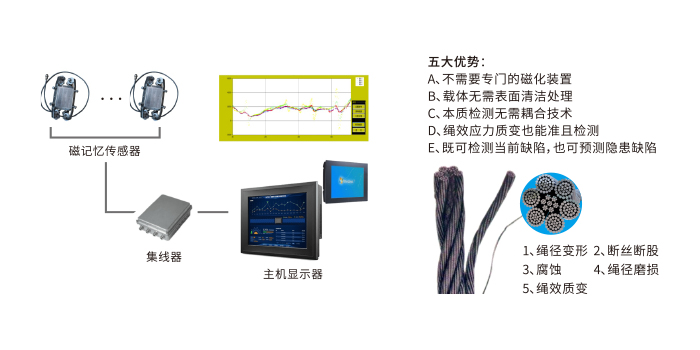 鋼絲繩是起重機工作的關鍵部件,吊裝事故中鋼絲繩斷裂導致事故占40%,鋼絲繩無損探傷在線監測系統能很好的預防此類事故。