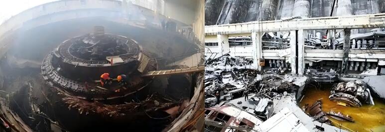 薩某水電站2號機組因超負荷運行,導致水輪機頂蓋的錨定螺栓被拉斷。斷裂后,機組轉動部件及頂蓋在巨大水壓下向上拋出,破壞廠房結構,引發水淹廠房的連鎖災害,造成75人死亡、13人受傷,多臺機組完全損毀。