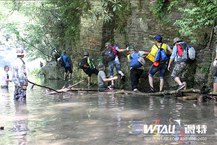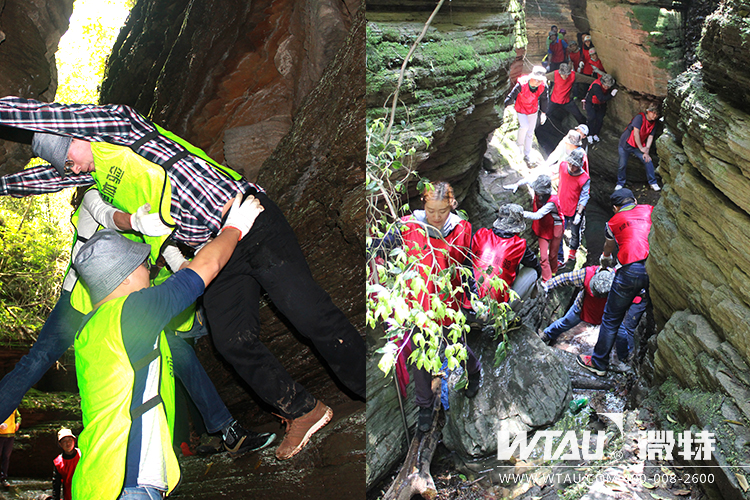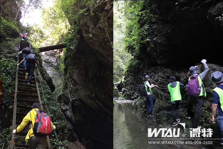 過天梯、攀索鏈、手腳并用、鍛煉著每個人的意志和膽量,在大家共同的努力下終于走出峽谷。